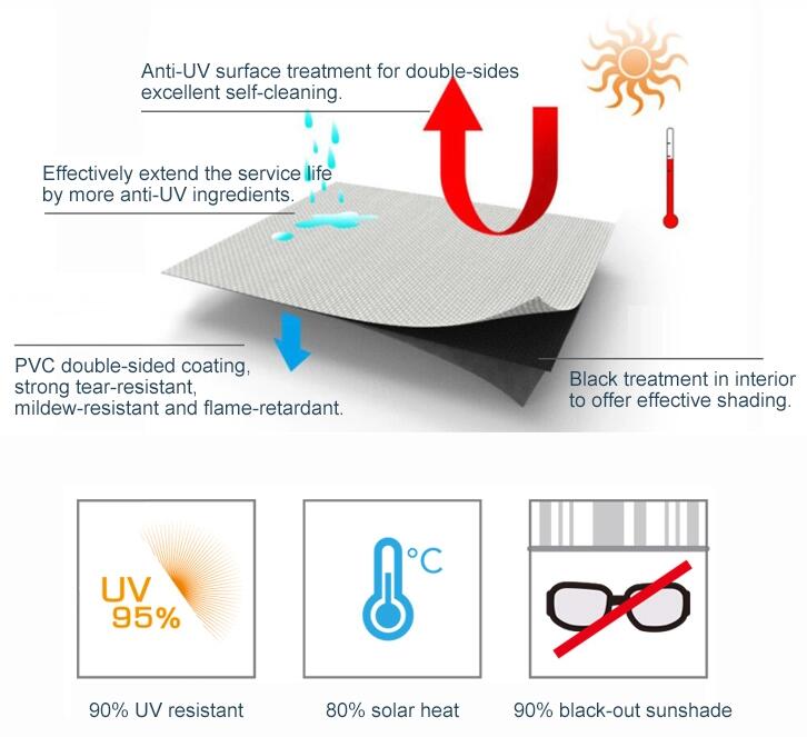 Roof material: 850g double coated PVC